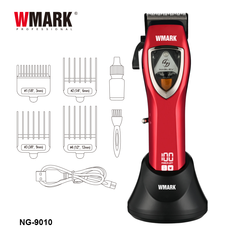 WMARK NG-9010 Wholesale 9000-10000RPM DLC Blades 3000mAh Maglev Motor Rechargeable Electric Barber Men Hair Clipper for Salon